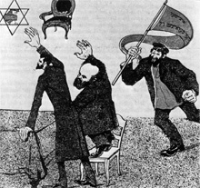 Политические карикатуры стали печатать приложение к газете «Дос лебн», «Дер безем» в 1906 году. Еврейская политическая карикатура возникла так впервые в истории российской еврейской печати. Шолом-Алейхем в одном из своих писем емко и кратко назвал то время, годом конституции и погромов. В истории шестимиллионного еврейского народа в России были одним из самых трагических периодов — годы первой русской революции. На определенные уступки должно было пойти самодержавие в результате могучего давления революционных сил, в котором еврейским массам принадлежала не последняя роль. О «даровании» народам империи непреклонных основ гражданской свободы «вначале действительной неприкосновенности личности, свободы собраний, слова, союзов» объявлял царь Николай II в Манифесте, который был подписан 17 октября 1905 года. Государственную Думу или собрание народных представителей, за которой определенные законодательные права признавались, Манифест обещал созвать. 18 октября, то есть сразу после подписания, Манифест был обнародован. Еврейский общественный деятель и историк Шимон Дубнов, который жил в тот период в Вильне, исполненный надежд и радости, в своем дневнике записал, что мы накануне действительного конституционного строя. А также он отметил, что неужели ли Россия будет свободной? И Трудное искусство в школе рабства быть свободным. Оказались недолговечными большинство листков и журналов, правда, не больше, чем один-два номера. Но, несмотря на цензурные репрессии и черносотенные угрозы нашлись такие издания, которые смогли продержаться более длительный период. Такие издания, как: «Дер фрайнд» («Друг») и «Дос лебн» («Жизнь») особенно привлекали нового еврейского читателя. Политические карикатуры начало печатать сатирическое приложение к газете «Дос лебн», «Дер безем («Метла») в 1906 году. В истории еврейской печати это были первые сатирические политические карикатуры, фактически.